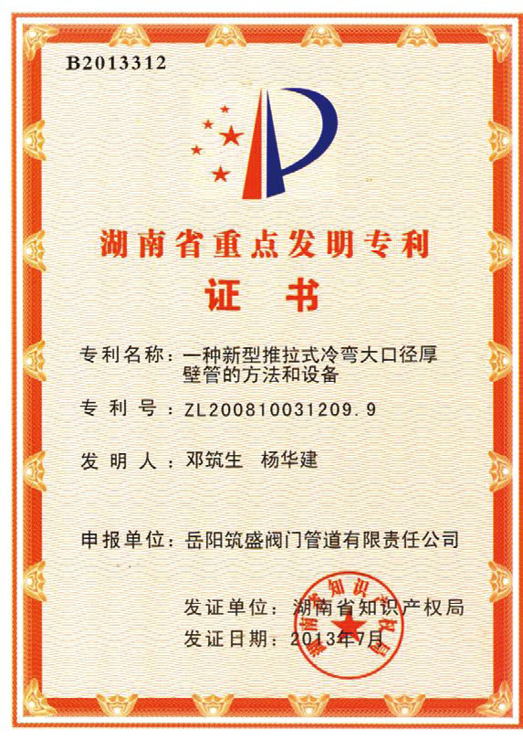 湖南省重點(diǎn)發(fā)明專利證書(shū)