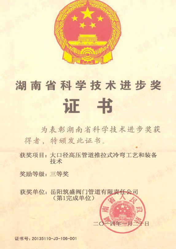 湖南省科技進(jìn)步獎(jiǎng)證書
