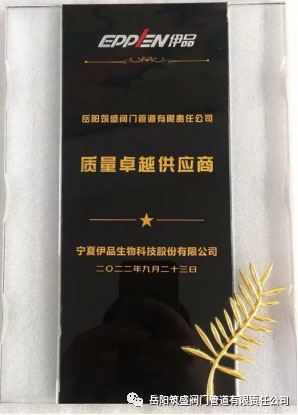 岳陽筑盛閥門管道有限責(zé)任公司作為優(yōu)秀供應(yīng)商代表受到寧夏伊品生物科技有限公司的高度贊揚,并榮獲了質(zhì)量卓越供應(yīng)商稱號。寧夏伊品現(xiàn)有總資產(chǎn)近20億元,擁有員工3500多人,是寧夏自治區(qū)人民政府確定的工業(yè)龍頭企業(yè);